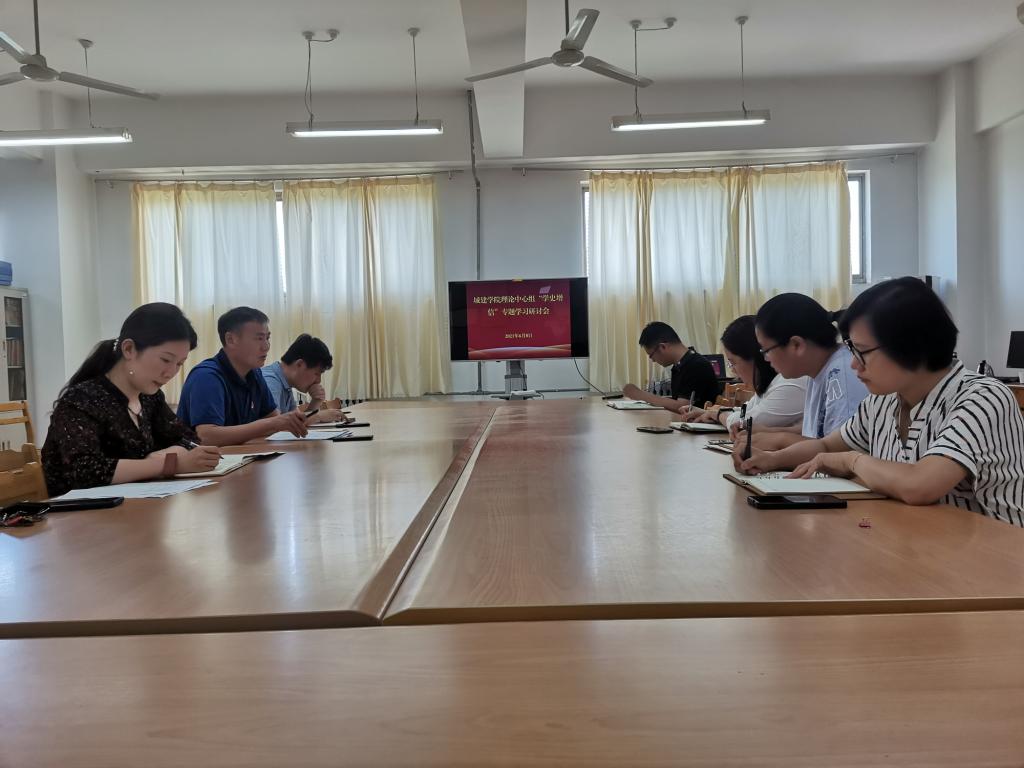 6月8日上午,城建学院党总支理论学习中心组在理工楼2321会议室开展“学史增信”专题学习研讨,党总支书记李振清主持专题学习研讨会,党总支全体支委成员参加学习研讨。