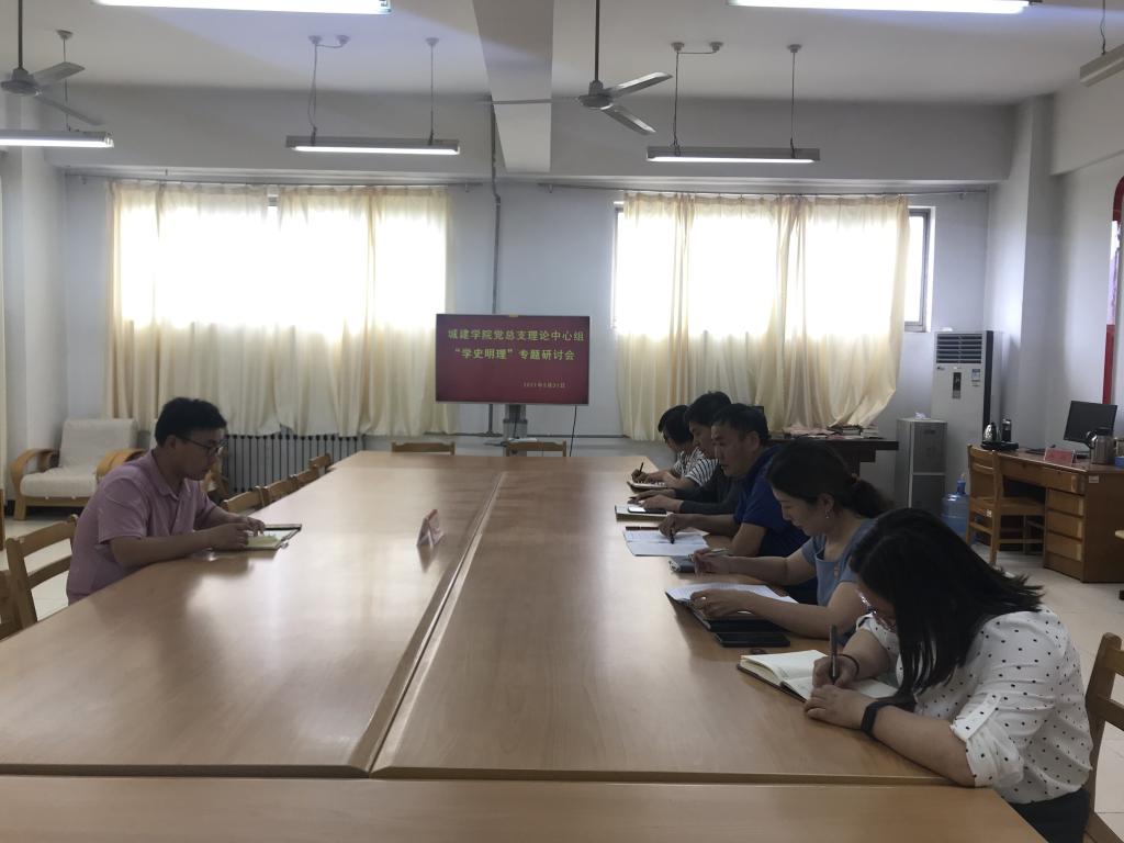 5月31日下午,城建学院党总支理论学习中心组在理工楼2321开展“学史明理”专题学习研讨,党总支书记李振清主持学习,校督导组成员杨银磊出席研讨会,理论学习中心组全体成员参加了学习。