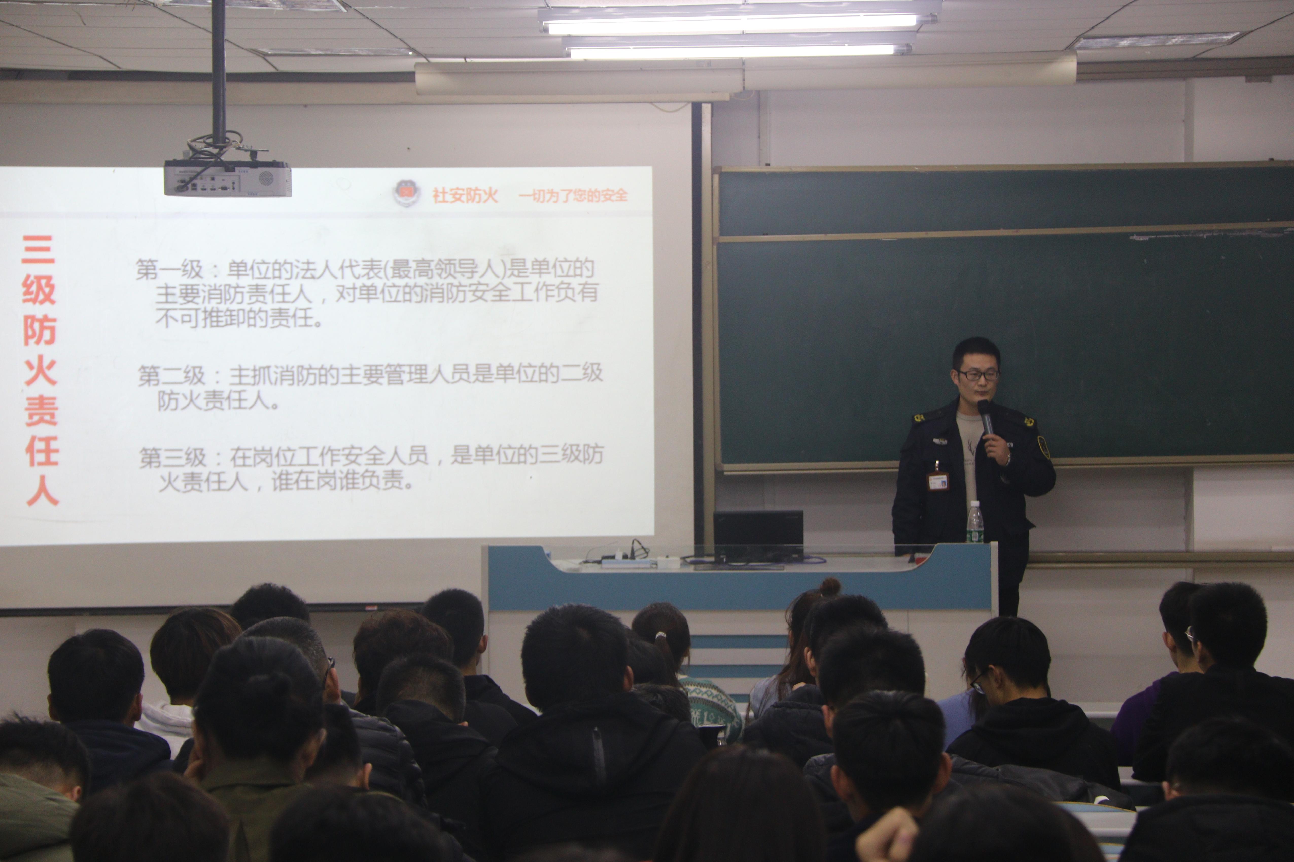 11月9日是全国第二十九个消防安全宣传日,为进一步增强学生消防安全意识,有效预防和遏制火灾事故的发生,我院邀请山东社安防火服务中心教官于11月22日晚在理工楼2505举办了消防安全知识培训讲座。