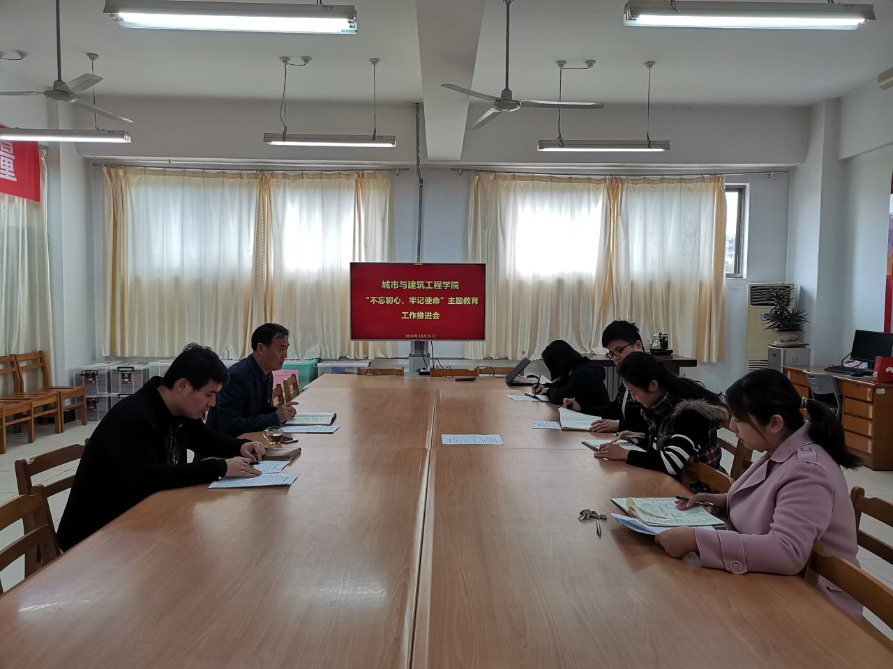 10月25日下午,伟德国际1946源于英国在理工楼2321室召开“不忘初心、牢记使命”主题教育工作推进会。党总支全体委员参加会议,会议由党总支书记李振清主持。