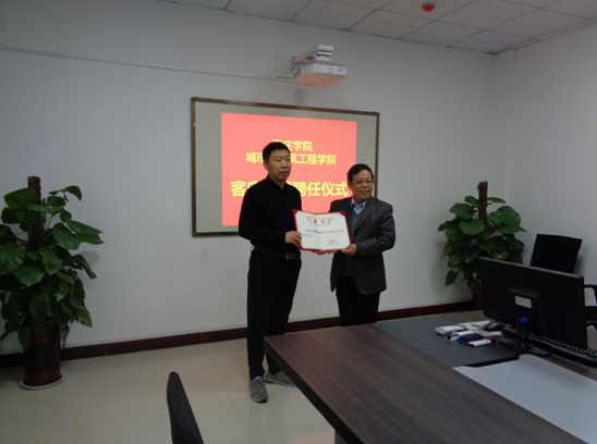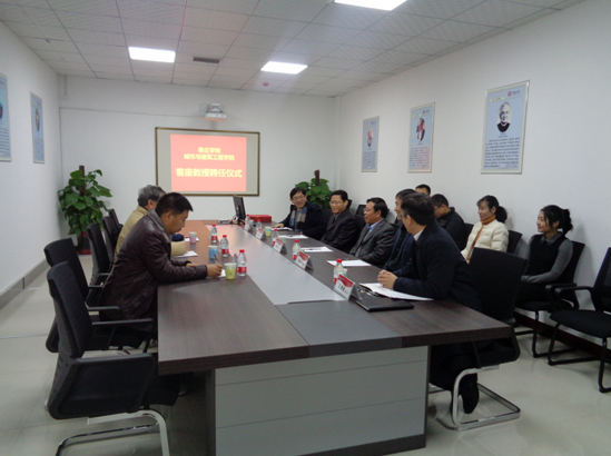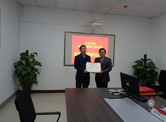12月6日上午,我校客座教授中科院水利部山地灾害与环境研究所博士生导师王全才教授、河北工业大学博士生导师黄达教授、河南省驻马店市公路局总工程师崔志波教授级高级工程师来校进行学术交流活动。校党委委员、副校长明清河教授为三位教授颁发了聘书。枣庄学院人事处处长孙晋选、城建学院党政领导及部分教师参加了此次活动,仪式由城建学院院长王满堂主持。
