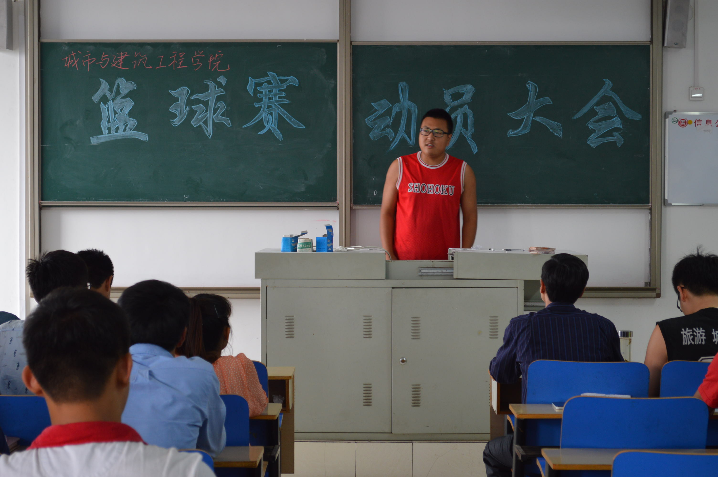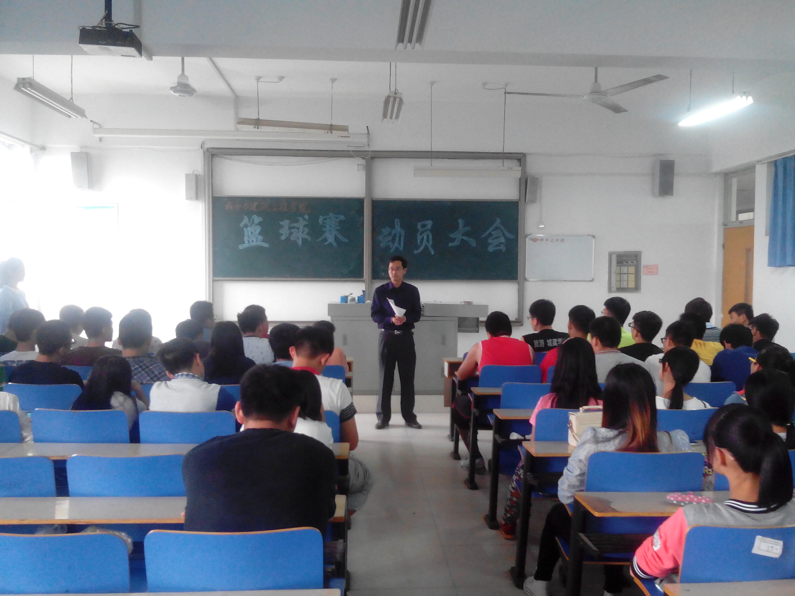 为激励城建学院篮球队在校篮球赛中取得佳绩,9月25号下午,我院在理工楼2518召开了篮球赛动员大会,城建学院团总支书记胡新华出席本次会议,全体篮球运动员、教练员、篮球宝贝和学生会成员参加了大会。